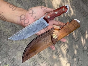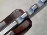 纯手工制作一体龙骨全大马无芯钢、230层手工锻造钢,刀背明显看到层数,搭配高档手工植鞣雕花皮,复古工艺着色手工缝线!高端大气奢华!